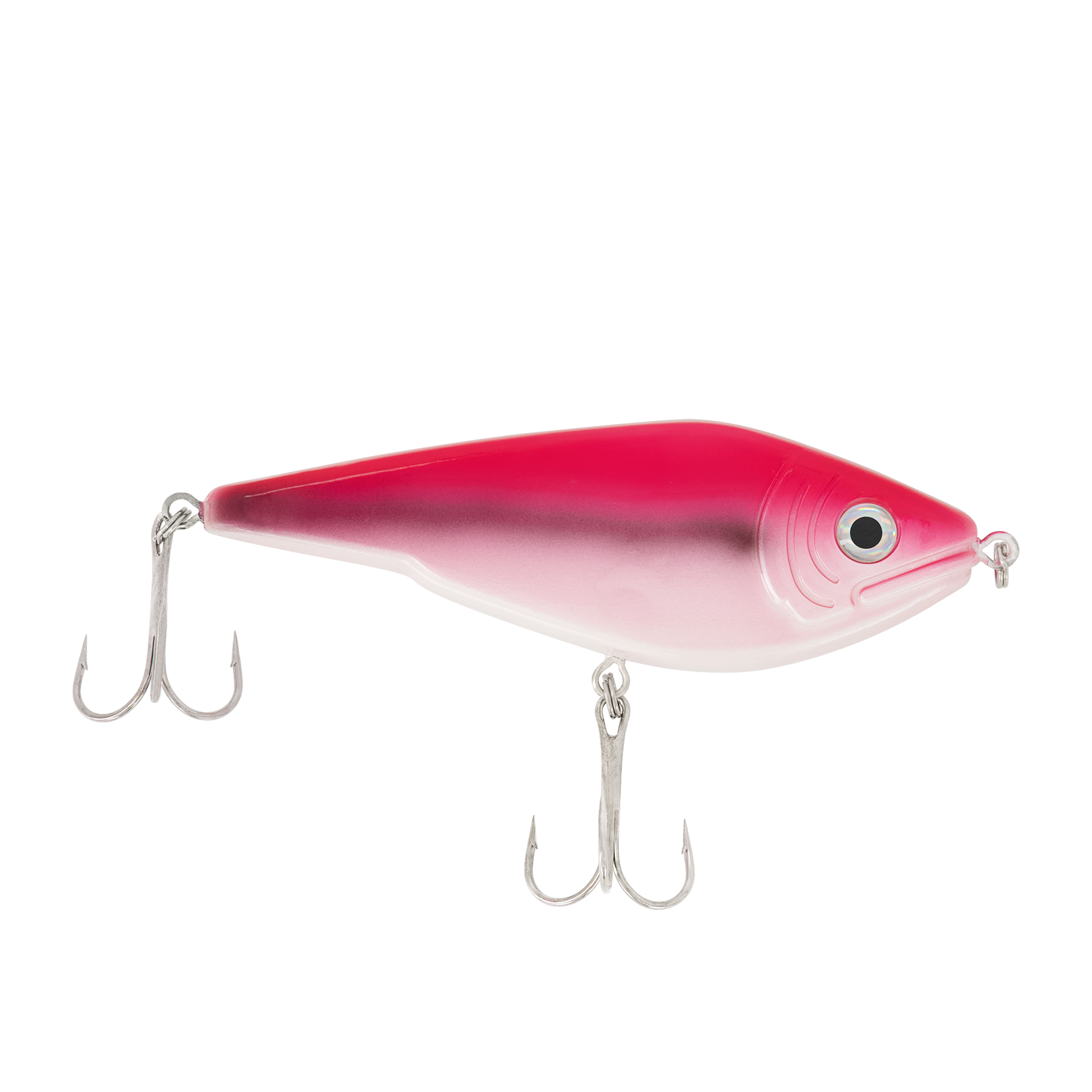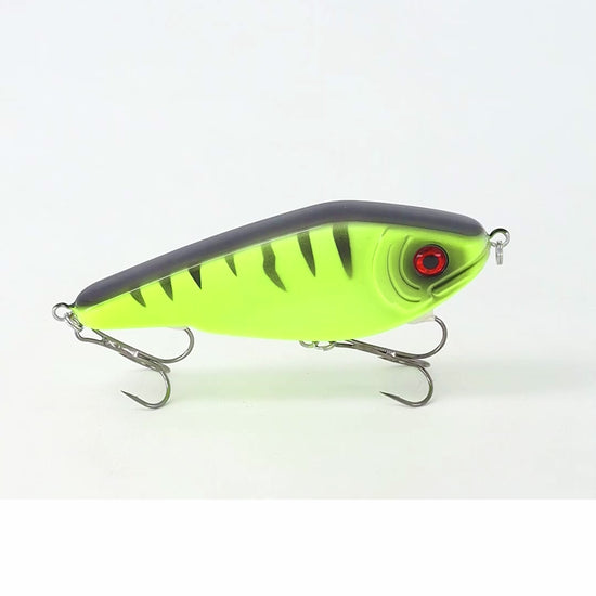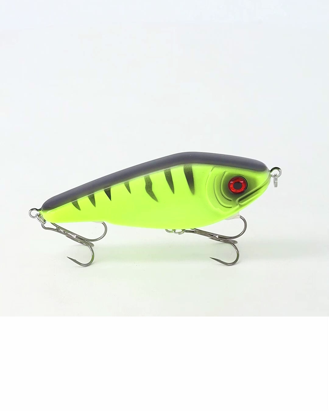 This hard bait with is designed to grab attention in murky or stained water. Featuring realistic 3D red eyes, a sleek baitfish profile, and two heavy-duty treble hooks, this lure is built to entice big predators like pike and musky. Its durable body and vibrant finish make it perfect for casting, while the lifelike action mimics an injured baitfish to trigger aggressive strikes.